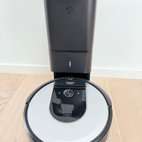iRobot robotstøvsuger. Den er beregnet til automatisk støvsugning af gulve i hjemmet og leveres med ladestation, som ses på billederne. Egnet til daglig rengøring af hårde gulve og tæpper afhængigt af model og indstillinger. Modellen har betjeningsknapper på toppen og navigerer selv rundt i rummet under brug.