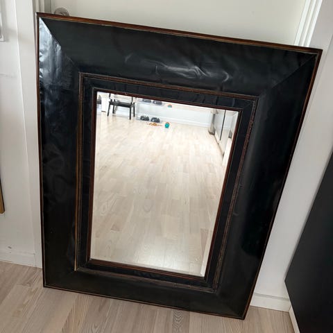Spejl med sort ramme Ø110 cm