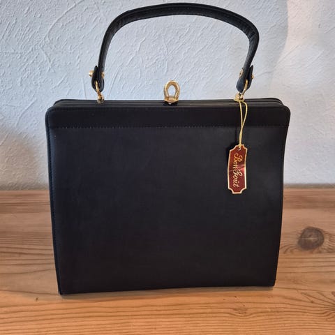 Vintage Læder Hånd Taske fra Bon Gout, foret med rødt læder (str. 30 x 20 cm)