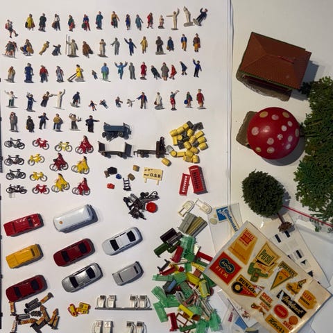 Div. Heljan pynt til modelbane sælges samlet. 8 stk. div. træer, jernbanebro, pose med "kul", 2 bænke og en person. Div. æsker medfølger. Sender gerne. Se også mine andre annoncer med modeltog.