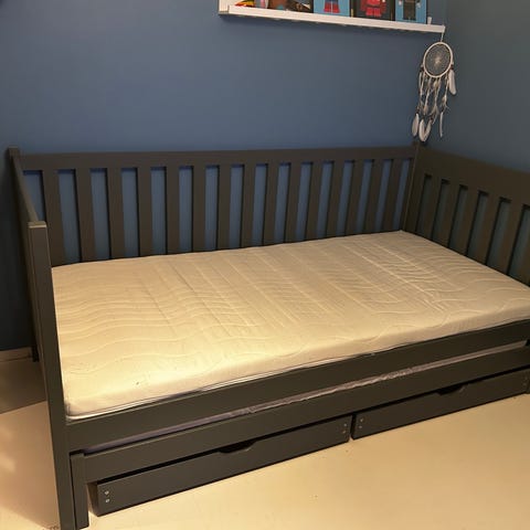 Der medfølger ikke madras til udtræksseng. Kan købes mange steder.