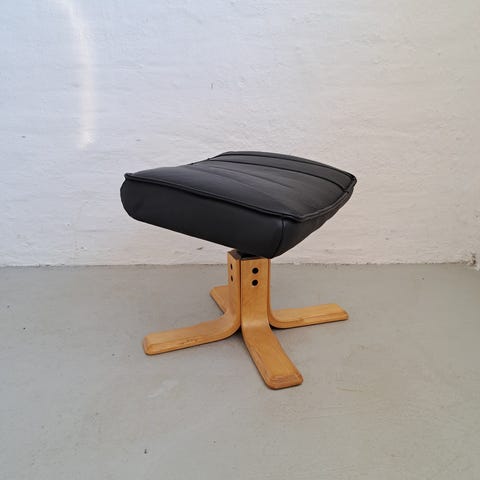 Rigtig fin og velholdt læderskammel i sort. Fra rent, røg- og dyrefrit hjem.