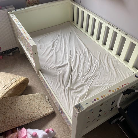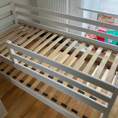 Ramme til juniorseng str 160/80 gives væk. Madras medfølger ikke.