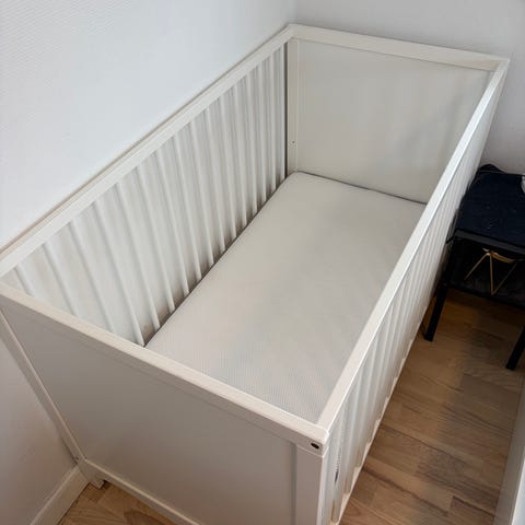 Hvid tremmeseng inkl. madras. Skal samles. Skal væk nu.