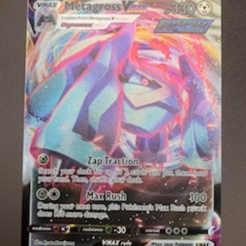 Pokémon Metagross GX samlekort. Kortet viser Metagross GX med angreb og evner trykt på forsiden samt standard Pokémon-bagside. Egnet til samling eller brug i Pokémon Trading Card Game afhængigt af spillerens egne præferencer og regelsæt.