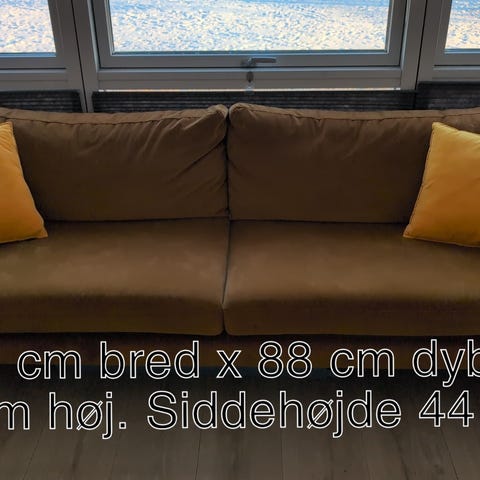 10 år gammel 3-personer sofa kan afhentes gratis. Det er model Vera fra sofacompany, så du kan tjekke målene der. Den er lidt nusset af almindelig brug og rygpuderne har et lidt blåligt skær fra at have stået i solen, men den fejler ikke noget og man sidder fint. Sofaen kan ikke skilles ad. Hurtig afhentning prioriteres.