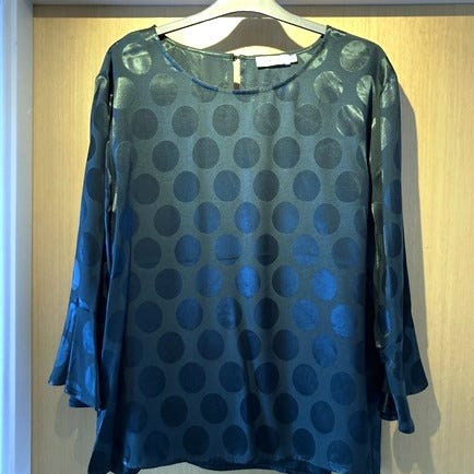 Flot og tidløs sort langærmet bluse fra MASAI med fine hvide prikker og løs, behagelig pasform. Modellen har rund halsudskæring og lange ærmer. Let og blød kvalitet, der falder flot på kroppen og er nem at style året rundt.