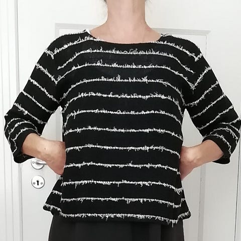 Brug den fx under en kort boxy blazer hvor kun prikker og ærmer titter frem, eller med tilføj farvet accessory, der giver liv til det sort-hvide uden at overdøve.