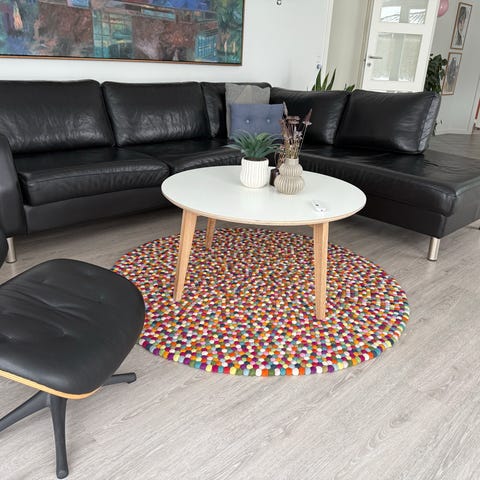 Pænt og velholdt sort sofabord / sidebord på metal-stel, købt i Idémøbler, som nu hedder Ilva. Det måler 59 cm i diameter og er 48 cm højt. Pæn stand, men med en smule brugsspor. Ikke noget, man ser, hvis man ikke lige kigger efter det - men det skal selvfølgelig siges her, og derfor er bordet også så billigt. Nypris 2000 kr, ca 10 år gammelt. Pænt og rent, fra ikke-ryger hjem.