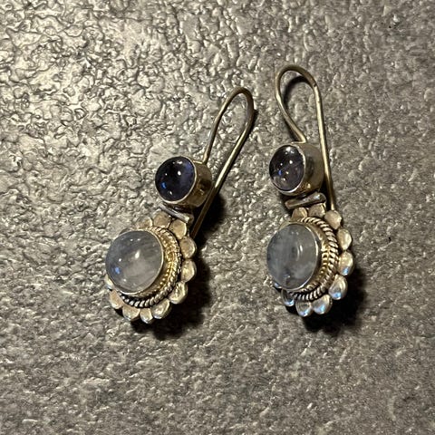 Sølvøreringe fra Rebekkarebekka, med sten i midten, sølv