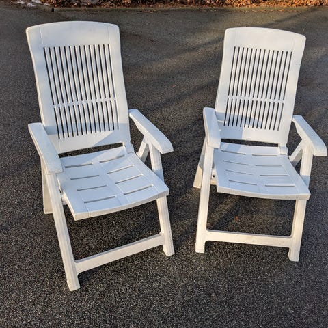 Havestol hvid plast med træben