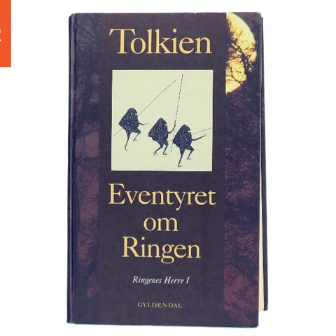 J.R.R. Tolkien Eventyret om Ringen bog, første del af Ringenes Herre på dansk. Udgivet af Gyldendal. Bogen er illustreret af Ingahild Grathmer, dvs Dronning Margrethe, med kort over Midgård på indersiden og sort-hvide illustrationer i teksten. Indbundet udgave med blå ryg og guldtryk på ryggen. Teksten er på dansk.
