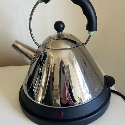 Den klassiske kedel fra 1985 er en perfekt kombination af masseproduktion og fantastisk design, som designeren Michael Graves arbejdede hårdt for at opnå. Graves har desuden givet kedlen et personligt præg med en blanding af Art Deco og Pop Art.