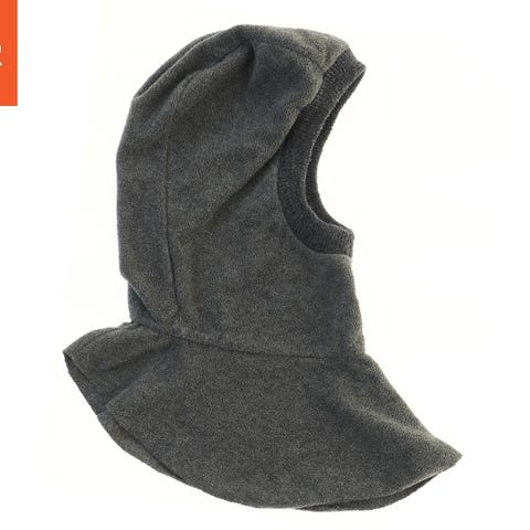Børnehue i sort farve. Huen har en enkel og praktisk design, ideel til at holde hovedet varmt i kølige vejrforhold. Den er rundformet og dækker hovedet og ørerne. Der er et lille regnbuemærke på siden, hvilket tilføjer et farverigt touch til det ellers enkelt udseende. Størrelsen er 30 cm, hvilket gør den passende for børn.