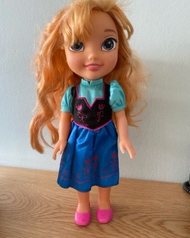 Dette er en blød plysdukke forestillende karakteren Anna fra den populære film 'Frozen'.