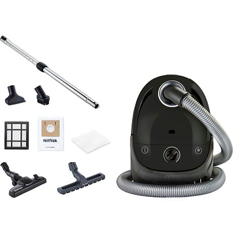 Nilfisk One støvsuger i rød farve. Kompakt model med teleskoprør, slange og gulvmundstykke. Egnet til almindelig støvsugning i hjemmet på hårde gulve og tæpper. Støvsugeren bruger pose og har regulering af sugestyrke på fronten.