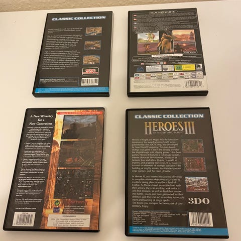 PC spilpakke med fire titler: Battlefield 1942, Unreal II The Awakening, Warlords IV Heroes of Etheria og Dungeon Keeper 2. Alle spil er på fysiske PC CD-ROM-diske i original emballage. Velegnet til samlere eller brugere med ældre PC-systemer, der understøtter disse spil på disk.