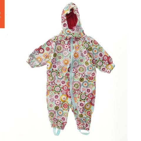 Heldragt til baby i en lyseblå farve med et farverigt dyremotiv. Dragten har stropper, der lukkes med knapper på skuldrene og elastik ved benene. Der er også sidelommer med knaplukning.