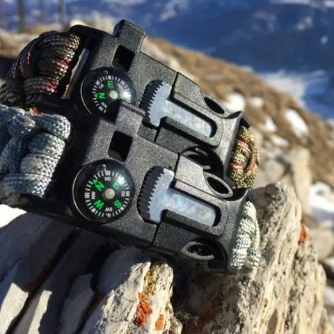 Dette er et kompas med en transparent base og en rød snor. Det har en standard kompasskive med gradueringer, ideel til navigation og orienteering. Kompas nålen er tydeligt markeret, og den røde snor gør den nem at bære om halsen. Produktets størrelse er 7,5x5,5 cm.