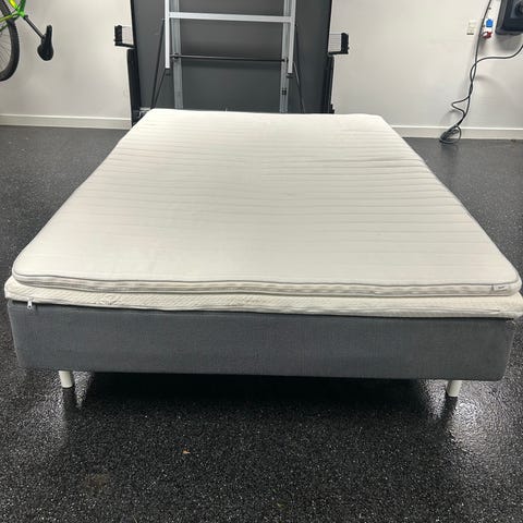 Nexus seng med madras i grå farve. Kvalitetsseng fra Drømmeland. Sengen har en polstret ramme i tekstil og en madras med fasthed markeret som fast på etiketten fra Nexus. Velegnet som dobbeltseng i soveværelse eller gæsteværelse. Materialer fremstår som tekstilbetræk på ramme. Der medfølger ikke topmadras. Fra ikke-ryger hjem. Nypris uden topmadras ca 6000kr.