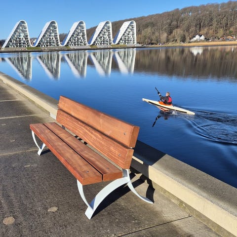 Flot, lyseblå, kvalitetsbænk i god stand fra designeren Nanna Ditzel.