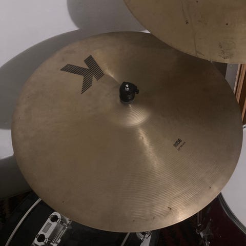 Zildjian K Custom Dry ridebækken. Bækkenet er en del af Zildjians K Custom-serie, kendt for en tør og kontrolleret klang med tydelig stokdefinition. Egner sig til trommesæt, hvor der ønskes et mere afdæmpet og fokuseret ride-lydbillede, fx i jazz, fusion eller mere dynamiske musikstilarter.