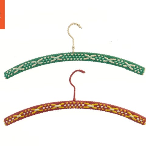 Tre lyserøde bøjler med en længde på 31,5 cm, ideelle til ophængning af beklædning. Hver bøjle har en metal krog i toppen og små indhak på siderne til at holde stropper. Bøjlerne har en glat overflade og en enkel, stilfuld form.