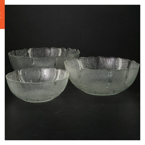 To klare glasfade formet som blade. Disse dekorative fade har et ribbet mønster og er ideelle til servering af snacks eller som pynt. Den detaljerede udskæring minder om bladårer, hvilket giver dem et unikt og naturligt udseende. Fadene måler 11x8x2 cm og er perfekte til små portioner.