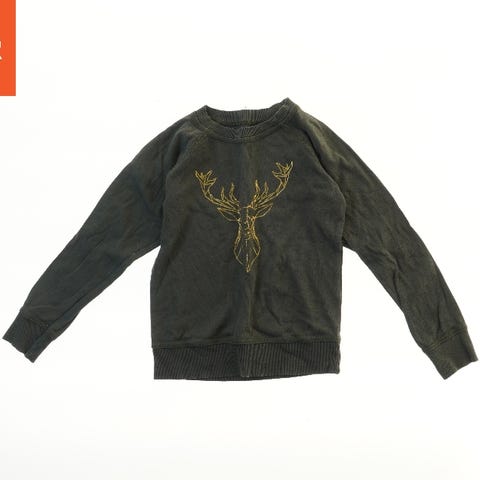 En blå sweatshirt med lange ærmer. Forsiden har et stort kompasmotiv med retninger angivet. Bagpå er der ingen motiver eller tryk. Sweatshirten har en rund halsudskæring.