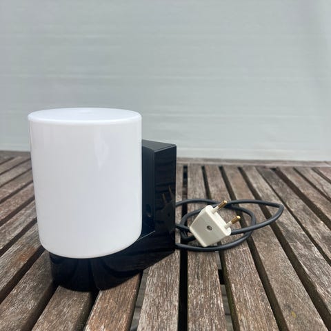 Væglampe i hvid farve. Lampen har en kegleformet skærm, der monteres direkte på væggen. Velegnet som indirekte belysning i for eksempel stue, soveværelse eller gang. Leveres med ledning til tilslutning i stikkontakt.