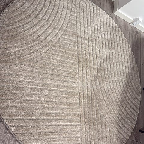 Trendcarpet rundt gulvtæppe. Under to år gammelt. 160 cm i diameter. Fremstår stadig rigtig pænt.