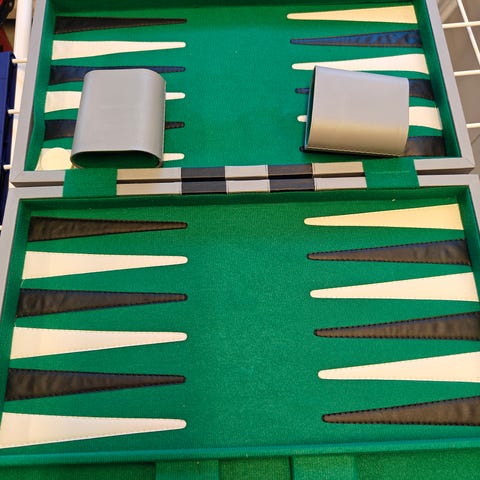Philos Backgammon magnetisk rejsespil. Spillet leveres i en sammenklappelig æske med magnetiske brikker, så det kan bruges på farten. Sættet indeholder spilleplade, brikker og terninger. Velegnet til 2 spillere og kan bruges både hjemme og på rejser.