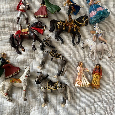 Riddere, heste, drage mm. Alle i fin stand undtagen ørnen, hvis ene vinge næsten er knækket