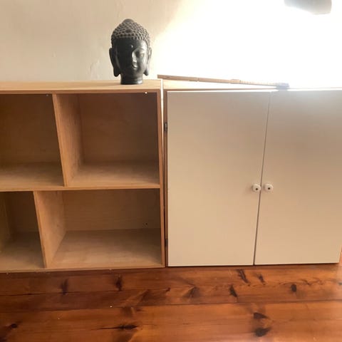 Mål på 1 sektion (4 rum): længde 70 cm, højde 70 cm, dybde 30 cm