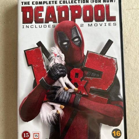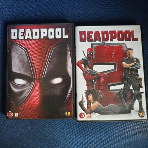 Deadpool dvd film. Fysisk dvd-udgave i standard plastikcover. Forsiden viser Deadpool-masken, og bagsiden indeholder oplysninger om filmen samt special features. Inde i æsken ligger den trykte dvd-disk med Deadpool-motiv. Velegnet til afspilning på dvd-afspillere, der understøtter regionen angivet på omslaget.