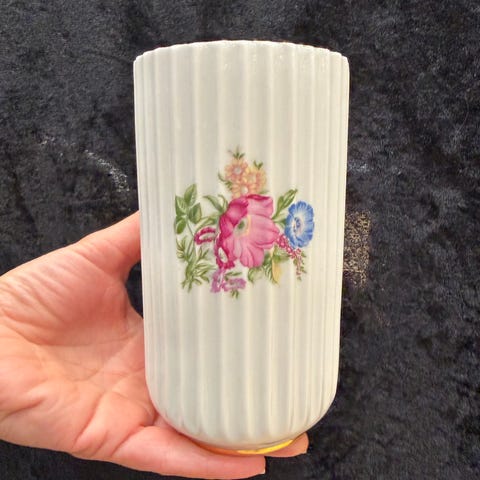 Smuk og klassisk vase i hvidt riflet porcelæn. Vasen har et cylinderformet design med lodrette riller hele vejen rundt. Smuk med f.eks. forårets grene, liljer eller amaryllis. Også fin opbevaringsløsning til gavepapir, flag eller andre lange genstande.