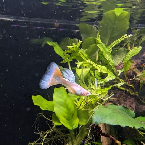 Guppyer fra en god stamme, der er ikke foretaget nogen form for avl eller udvælgelse. Sælger sunde voksne individer. er optalt med hanner / Hunner ved salg. Ingen individuel udvælgelse efter farve . Hunner 3 kr. hanner 4 kr.
