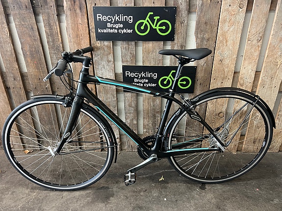 God og velkørende cykel med 27 udvendige Shimano gear, 50 cm./L alu. stel, hydrauliske skivebremser, lygter, bagagebærer, skærme og 3 mdr. garanti. Cyklen er nyserviceret og har fået nye håndtag, nye bremseklodser, ny krans og ny bagskifter.