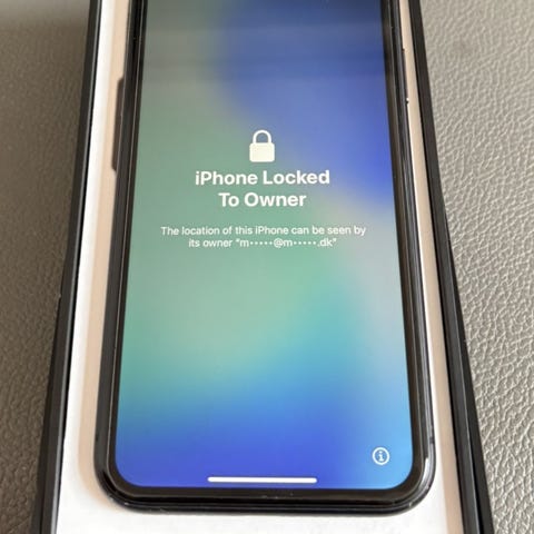 På billederne ses telefonen både i æske og der medfølger et slidt separat cover som kortholder