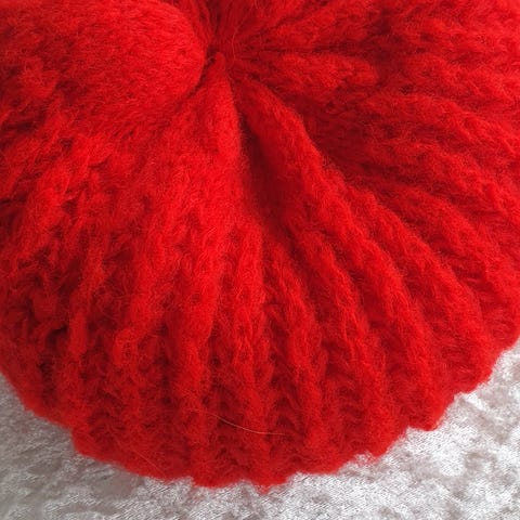 Fin hvid eller sort strikhue. Hjemmelavet. Til ca. 50 cm i hovedmål men fleksibel da elastisk. Hvid. 25 cm lang og ca. 20 cm med det lille opsmøg. Supersød hue. Fin og intakt.