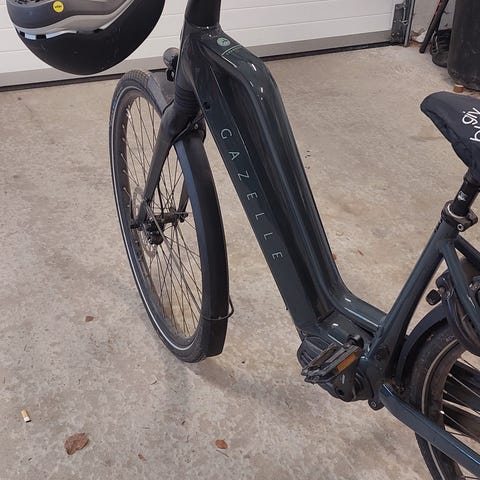Cyklen er nyserviceret og har fået nyrenoveret batteri, ny oplader, ny krans, ny kæde, nye bremseklodser, ny sadel, nye pedaler, ny støttefod, 2 nye dæk, 2 nye slanger og nyt gearkabel.