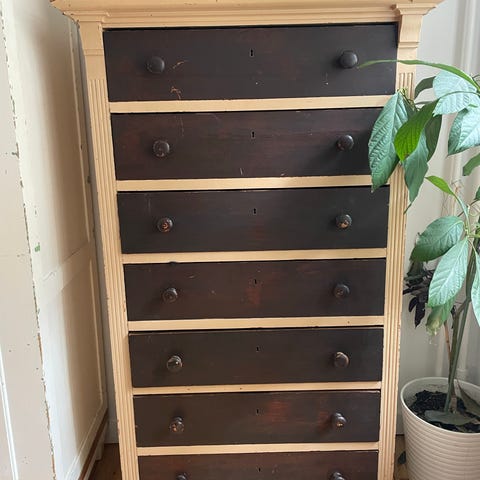 Rigtig smuk, gammel kommode i træ. Skal hentes på Nørrebro inden d. 1/3.
