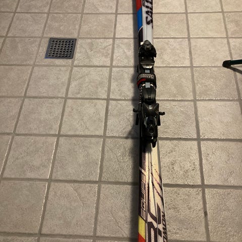 Salomon Rockette ski på 161 cm med Salomon-bindinger. Skiene har fuld trækerne (full woodcore) og twin tip-konstruktion.