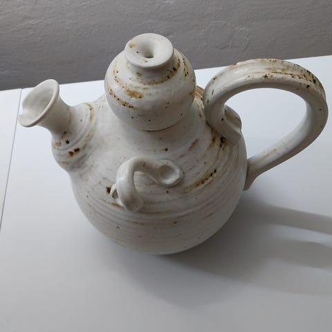 Fin hvid tekande fra Aluminiaingen skår men lidt krakelering i glasur nederst