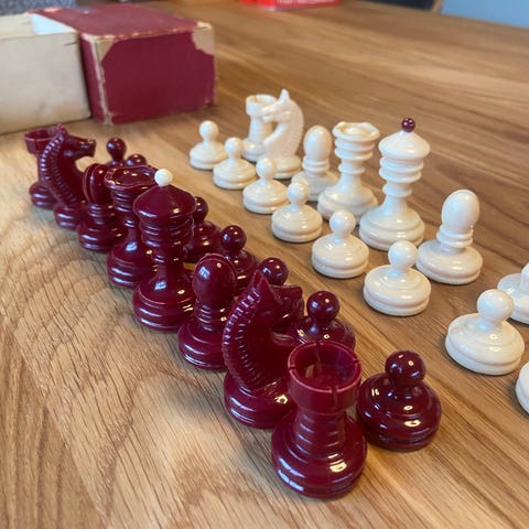 Skaksæt træ brikker sort og natur