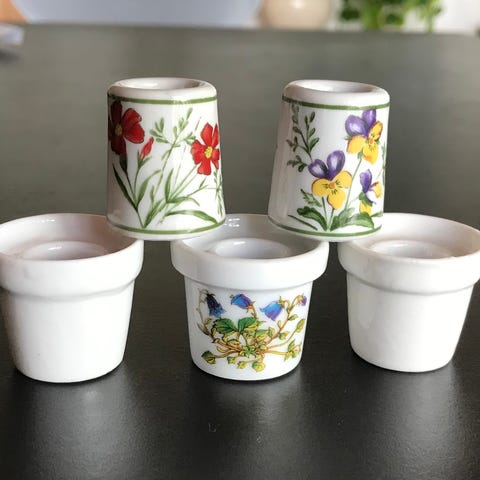 Germany, Søde små fingerbøl lysestager af porcelæn / mini lysestage / blomster lysestager