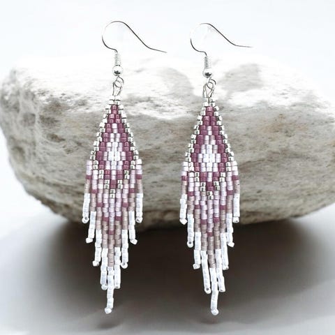 Farver: sandblæste støvede lilla perler, gammel rosa, hvide og guld perler