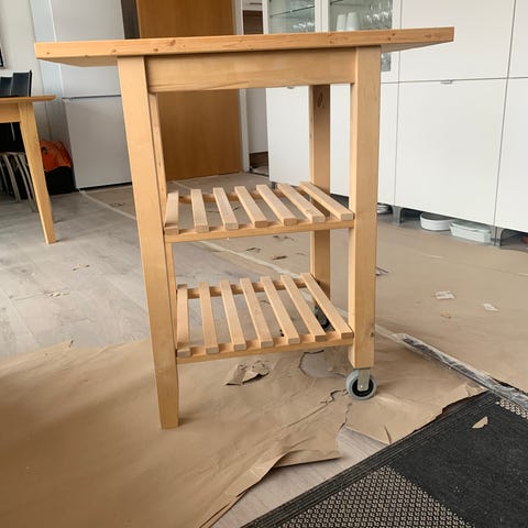 Jeg sælger min gode følgesvend grundet pladsmangel. Perfekt rullebord til en masse opbevaring. Den hvide plet kan desværre ikke komme af. Den ruller super godt på hjulene og fejler ellers ingenting.