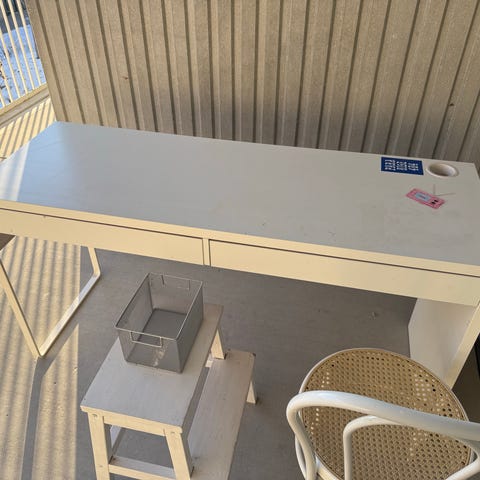 Skrivebord og hylder fra Ikea.