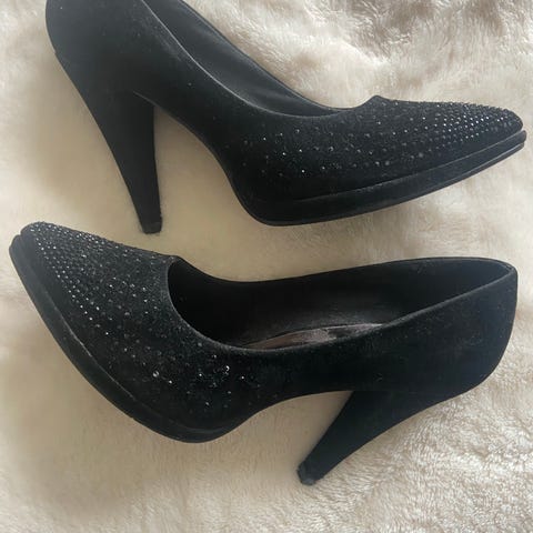med åben hæl og rem. Hælen er blokformet og giver ekstra støtte.